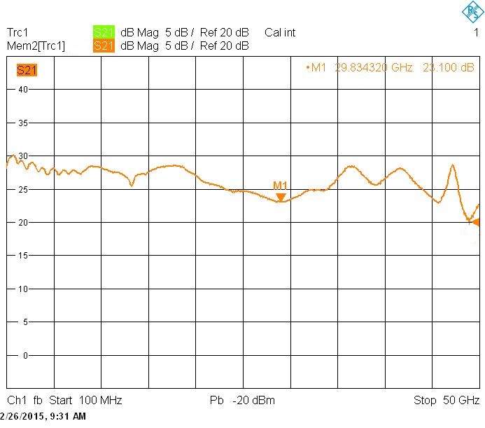 | Коэффициент усиления, не менее – до 40 ГГц – до 50 ГГц |