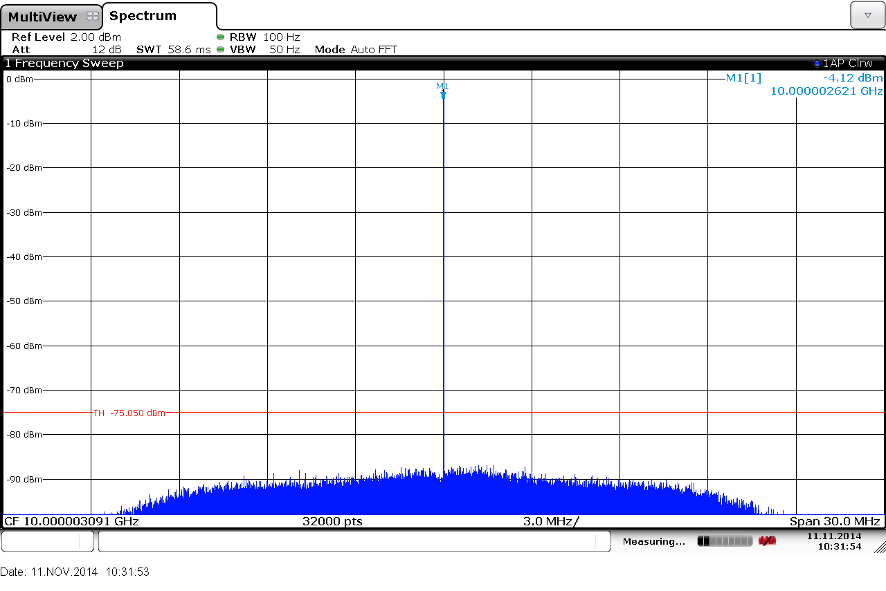 | Относительная спектральная плотность мощности фазовых шумов при отстройке на 10 кГц от несущей (10 ГГц), не более |